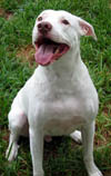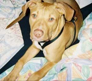 is our boy Dozer at age four. He is possibly a pit/lab mix. You can read