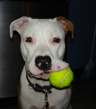 ApolloContributed by Penney "I am the proud owner of a 1 year old pitbull terrier named Apollo (after the Sun God because he brings so much light into my life!)... He's a real goof and this can be seen best in this photo where his tennis ball is lodged in his flappy lips--that's where he likes to put things so he can get something else in his mouth!!! " 1/18/07 Previous | Home | Next |