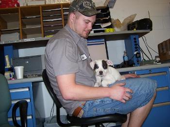 "This is Dixie out 10 week old Pit mix. We are actually starting to think that she maybe full pit but are not exactly sure lol but she is gorgeous as you can see and a sweetheart." 3/12/07