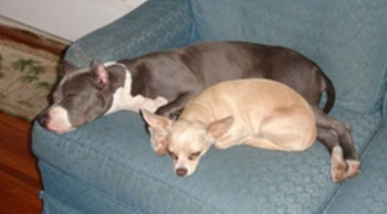 Lexi is the pit bull and Nala is the Chihuahua.